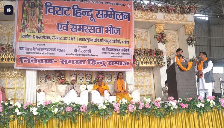 अयोध्या। हिन्दू समाज की एकता, सामाजिक समरसता और स्वाभिमान को सुदृढ़ करने के उद्देश्य से अयोध्या में विराटहिन्दूसम्मेलनएवंसमरसताभोज का आयोजन किया गया। यह कार्यक्रम कौशलपुरी कॉलोनी स्थित सुरेन्द्र लॉन में संपन्न हुआ, जिसमें संत समाज, धर्माचार्य, सामाजिक संगठनों के पदाधिकारी तथा बड़ी संख्या में नागरिकों ने सहभागिता की।
