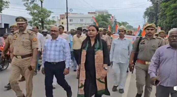 अंबेडकर नगर। सोमवार को अकबरपुर में ज्वाइंट मजिस्ट्रेट प्रतीक्षा सिंह के नेतृत्व में भव्य तिरंगा यात्रा निकाली गई। इस यात्रा में विभिन्न विभागों के सभी कर्मचारी, अधिकारी और स्थानीय लोग उत्साहपूर्वक शामिल हुए।