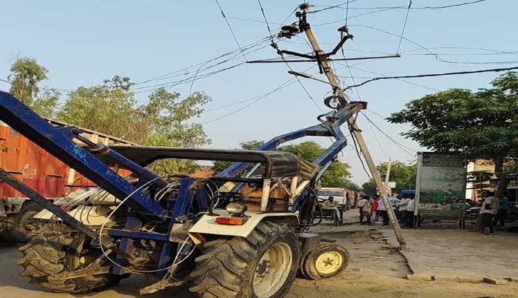 तेज रफ्तार ट्रक ने बिजली पोल में मारी टक्कर, दो पोल टूटे, घंटों तक रहा जाम