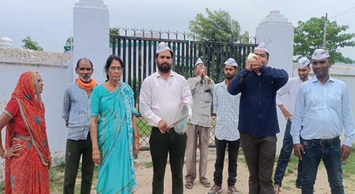 सरकारी स्कूलों को बंद करने के विरोध में आप ने किया प्रदर्शन
