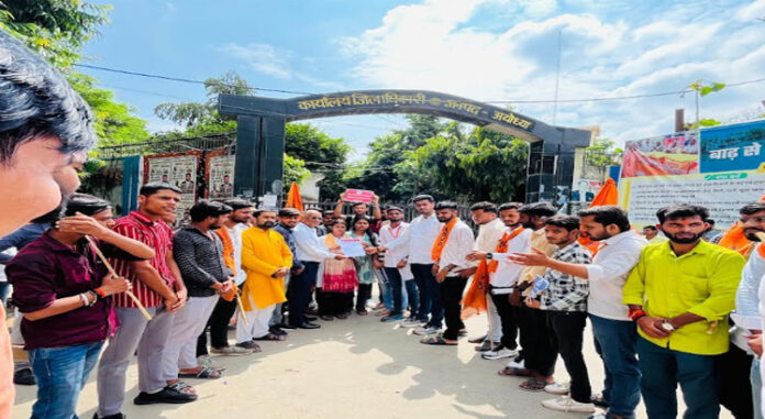अयोध्या। रामस्वरूप मेमोरियल विश्वविद्यालय, बाराबंकी लाठीचार्ज की घटना का विद्यार्थी परिषद ने विरोध जताया। इसके साथ में मंत्री ओम प्रकाश राजभर का पुतला फूंका। परिषद ने प्रदेश व्यापी आंदोलन का आवाहन किया है, जिसको लेकर जिलाधिकारी अयोध्या के कार्यालय के मुख्य द्वार पर विद्यार्थी परिषद कार्यकर्ताओं ने प्रदर्शन करके एडीएम सिटी को ज्ञापन सौंपा