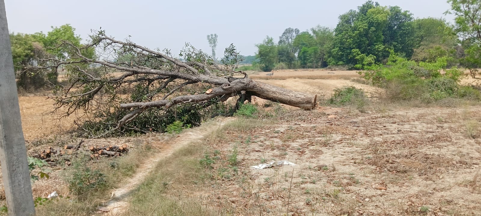 जलालपुर अम्बेडकर नगर। कोतवाली क्षेत्र के चन्दनपट्टी, अशरफपुर मजगवां गांव में बाग से हरा आम का पेड़ काटे जाने का मामला सामने आया है। पीड़ित सहखातेदार ने गांव के ही एक व्यक्ति पर बिना अनुमति पेड़ काटने का आरोप लगाते हुए पुलिस से शिकायत की है।