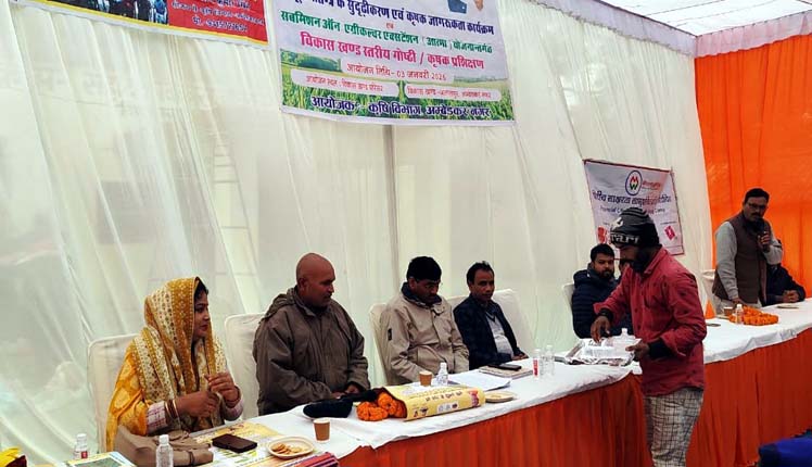 अम्बेडकर नगर। जलालपुर ब्लॉक परिसर में शनिवार को कृषि सूचना तंत्र के सुदृढ़ीकरण एवं कृषक जागरूकता कार्यक्रम का आयोजन किया गया। कार्यक्रम का उद्देश्य किसानों को कृषि से जुड़ी नवीन सरकारी योजनाओं, आधुनिक तकनीकों और वैज्ञानिक खेती के तरीकों से अवगत कराना रहा। बड़ी संख्या में उपस्थित किसानों ने विशेषज्ञों की बातों को गंभीरता से सुना और जानकारी प्राप्त की।