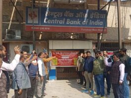 बैंक कर्मचारियों का प्रदर्शन, निजीकरण व ठेका प्रथा का किया विरोध