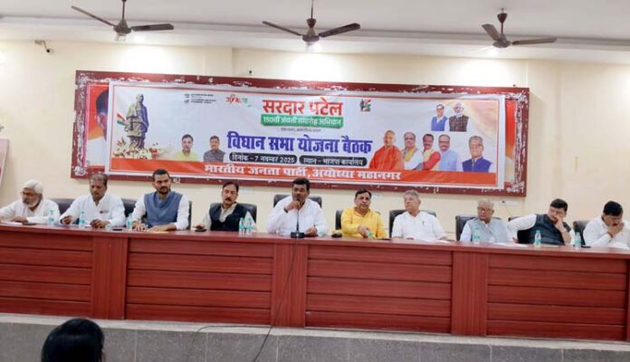 अयोध्या। सरदार वल्लभभाई पटेल की जयंती पखवारा के अवसर पर भाजपा द्वारा विभिन्न कार्यक्रमों का आयोजन किया जा रहा है। इसी क्रम में 13 नवम्बर को एकता पदयात्रा का आयोजन किया जाएगा, जो हनुमान मंदिर पूरा बाजार से गंगौली तक निकलेगी। इस कार्यक्रम की तैयारी को लेकर अयोध्या विधानसभा की बैठक भाजपा कार्यालय में हुई। बैठक में पदयात्रा को ऐतिहासिक और जनसंपर्क अभियान के रूप में मनाने की रणनीति बनी। जिसमें पदाधिकारियों को जिम्मेदारी सौंपी गई।