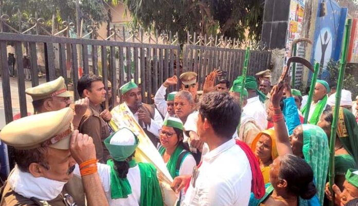 साकेत बुद्ध विहार को अधिग्रहण से मुक्त करने की मांग, भाकियू का प्रदर्शन