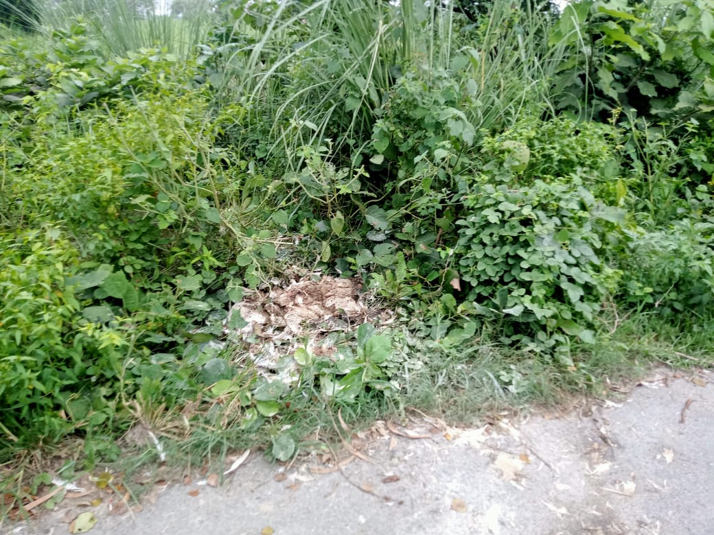 सड़क किनारे फेंकी गई मरी हुई मुर्गियाँ, दुर्गंध से परेशान ग्रामीण