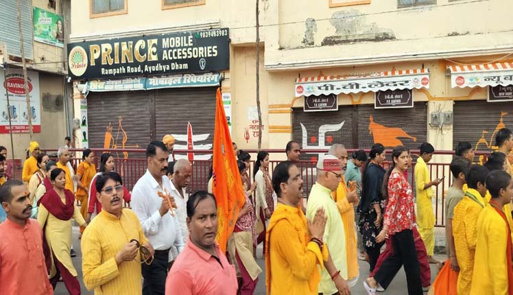 परिक्रमा श्रीराम जन्मभूमि से शुरू होकर टेढ़ी बाजार, गोकुल भवन, अशर्फी भवन, मत्गजेंद्र, हनुमानगढ़ी तिराहा होते हुए पुनः श्रीराम जन्मभूमि पर संपन्न हुई। इस दौरान स्थानीय श्रद्धालुओं ने रामलला के जयघोष और “भारत माता की जय” के नारे लगाकर वातावरण को भक्तिमय बना दिया।