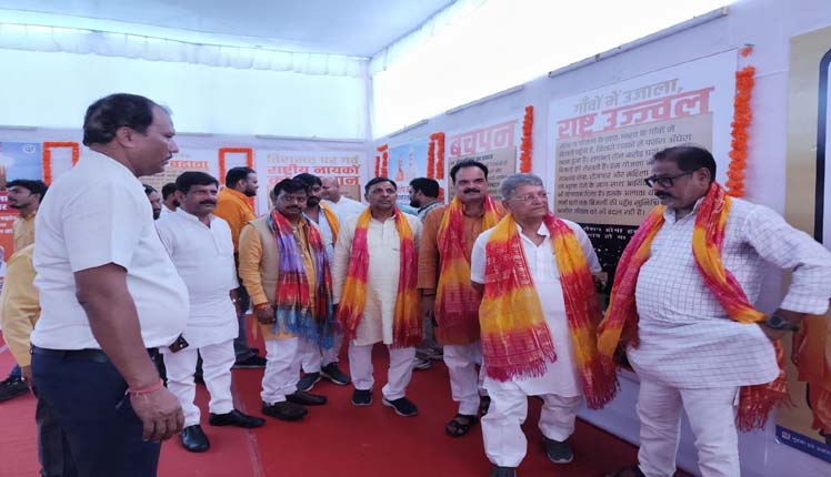 अयोध्या। प्रधानमंत्री के व्यक्तित्व, कृतित्व, न्यूइंडिया @2047 और प्रदेश सरकार की उपलब्धियों पर आधारित प्रदर्शनी का उद्घाटन रामकथा पार्क की पक्की पार्किंग में किया गया। उद्घाटन महापौर गिरीशपति त्रिपाठी, विधायक सदर वेद प्रकाश गुप्ता, विधायक मिल्कीपुर चंद्रभानु पासवान, भाजपा जिलाध्यक्ष संजीव सिंह और महानगर अध्यक्ष कमलेश श्रीवास्तव ने संयुक्त रूप से किया।