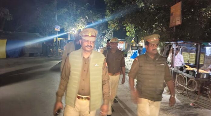 मंशापुर कुटी में पुलिस का सघन पैदल गश्त, सुरक्षा व्यवस्था का लिया जायजा