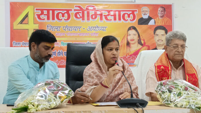 अयोध्या। जिला पंचायत के चार वर्ष पूर्ण होने पर सर्किट हाउस में आयोजित प्रेस वार्ता के दौरान जिला पंचायत अध्यक्ष रोली सिंह ने विकास की उपलब्धियों को रेखांकित किया। उन्होंने बताया कि इन वर्षों में अयोध्या जनपद के समग्र विकास को दृष्टिगत रखते हुए आधारभूत संरचनाओं के साथ-साथ पर्यावरण संरक्षण एवं जनकल्याण की दिशा में सार्थक प्रयास किए गए हैं।