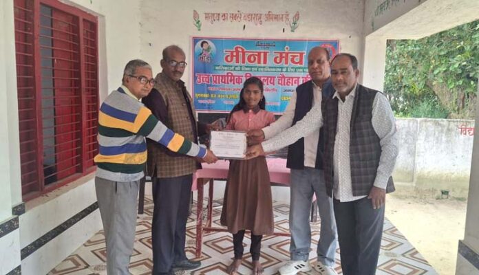 एनीमिया से बचाव हेतु छात्रों को संतुलित आहार अपनाने की जानकारी दी गई। साथ ही चित्रकला प्रतियोगिता का आयोजन कर प्रतिभागियों को पुरस्कृत किया गया तथा वीरगाथा विजेताओं को प्रशस्ति पत्र प्रदान कर सम्मानित किया गया। प्रधानाध्यापक राज बहादुर मिश्रा ने कहा कि मीना मंच विद्यालय की महत्वपूर्ण पहल है, जो बालिकाओं में आत्मविश्वास, नेतृत्व क्षमता और सामाजिक चुनौतियों का सामना करने की हिम्मत विकसित करता है। उन्होंने सभी शिक्षकों और सुगमकर्ता को कार्यक्रम की सफल संगठन के लिए बधाई दी। कार्यक्रम में सहायक अध्यापक प्रदीप कुमार मौर्य, राजकरन प्रजापति, अरशद कमाल सहित विद्यालय स्टाफ एवं रसोइयाँ उपस्थित रहीं।