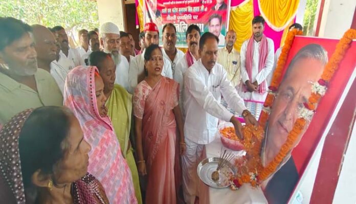 बसखारी अंबेडकर नगर। विधान सभा क्षेत्र आलापुर के सपा कार्यालय रामनगर में समाजवादी पार्टी के संस्थापक व पूर्व मुख्यमंत्री मुलायम सिंह यादव के तीसरी पुण्यतिथि पर श्रद्धांजलि सभा का आयोजन किया गया। जिसके मुख्य अतिथि सपा राष्ट्रीय सचिव विधायक त्रिभुवन दत्त रहें।श्रद्धांजलि सभा को संबोधित करते हुए विधायक त्रिभुवन दत्त ने कहा कि डॉ०राम मनोहर लोहिया की विरासत को कोई संभालने का कार्य किया तो उस नेता का नाम मुलायम सिंह यादव था।डॉ०राम मनोहर लोहिया ने बाबा साहब डॉ०भीम राव अंबेडकर के सिद्धांतों पर चल करके समाज में सामाजिक परिवर्तन एवं समता मूलक समाज की लड़ाई लड़ने का कार्य किया।जिस समाज से सब कुछ छीन गया था ऐसे समाज के लोगों को इस देश का हुक्मरान बनाना चाहता थे।इस लड़ाई को सौ कदम किसी ने आगे बढ़ाया तो उस नेता का नाम मुलायम सिंह यादव था।आज समाज में दलितों,पिछड़ों,मजलूमों और अकलियत समाज के लोगों के लिए अगर संघर्ष की पहचान के नाम से किसी संघर्षशील नेता का नाम आता है तो उस नेता का नाम मुलायम सिंह यादव था।मुलायम सिंह यादव पिछड़ों के नेता के साथ-साथ हर समाज के नेता माने जाते थे,दबे कुचले लोगों के ऊपर हो रहें अत्याचार के खिलाफ हमेशा लड़ाई लड़ने का काम करते थे,उन्होंने कहा कि मेरे पिछड़े समाज के लोगों पिछड़े समाज में कोई नेता पहले था तो चौधरी चरण सिंह थे,उसके बाद कोई नेता आता है तो वह मुलायम सिंह यादव थे। मेरे साथियों इस पूरे प्रदेश में गाजीपुर से लेकर गाजियाबाद तक हा हा कर मचा हुआ है।लूट,हत्या,चोरी, छिनैती, बलात्कार चरम पर है।कानून व्यवस्था पूरी तरह ध्वस्त है।एक विशेष जाति के लोगों के ऊपर जुल्म ज्यादती हो रही है।आप सभी साथियों से अपील करता हूं कि आने वाले समय में प्रदेश से भाजपा की सरकार हटाकर अखिलेश यादव को इस प्रदेश का मुख्यमंत्री बनाने का कार्य करना होगा।तभी यह नेता जी के प्रति सच्ची श्रद्धांजलि होगी। कार्यक्रम की अध्यक्षता विधान सभा अध्यक्ष रवींद्र कुमार यादव ने किया।संचालन जिला उपाध्यक्ष रामप्यारे निषाद ने किया।इस मौके पर जिला पंचायत सदस्यगण अजीत कुमार यादव,संतोष यादव,युवा नेता राहुल दत्त यशवर्धन,विद्या सिंह भारती, राजबहादुर यादव,विनोद निषाद,सपा नेता रामचंद्र वर्मा,अजय गौतम एडवोकेट,कृष्ण कुमार पाण्डेय,मोहम्मद मोईन एडवोकेट,लालमणि गौंड,घनश्याम यादव,संजय शर्मा,मनीष यादव रामप्रसाद यादव,राजेंद्र प्रसाद दाढ़ी,नायबे आलम,आशाराम त्यागी, यादव,रहमुल्लाखान,शिवपूजन यादव,रमाकांत यादव,संजय यादव,यशवंत यादव,शिवकरन यादव,योगेन्द्र यादव,कतराज चौरसिया,बिंदेश्वरी यादव,दीपक यादव,अमरेंद्र यादव,संजीव यादव,राम सकल यादव,रामजियावन यादव,ज्ञानमती निषाद,पूनम देवी,नशिव कुमार,प्रदीप गौतम 