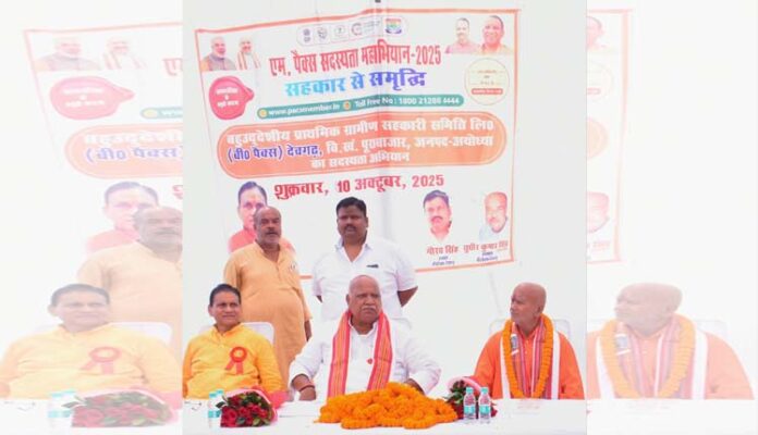 पूरा बाजार, अयोध्या । नवगठित बी०पैक्स (प्राथमिक ग्रामीण सहकारी समिति लि.) देवगढ़ का उद्घाटन एवं सदस्यता अभियान का की शुरूआत पूर्व सांसद लल्लू सिंह ने किया। गांव के सैकड़ों किसानों ने समिति की सदस्यता लेकर संगठनात्मक एकजुटता और आर्थिक सशक्तिकरण का संदेश दिया। समारोह में पहुंचे अतिथियों का ग्रामीणों ने फूल-मालाओं से गर्मजोशी भरा स्वागत किया।