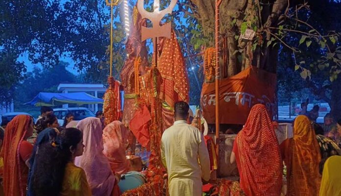 शाम ढलते ही मंदिर प्रांगण सुहागिनों की कतारों से गुलजार हो उठा। लाल, हरे और पीले परिधानों में सजी महिलाएं सोलह श्रृंगार कर पूजा की थालियों के साथ पहुंचीं और जयकारों के बीच शिवलिंग पर बेलपत्र, धतूरा, पुष्प और गंगाजल अर्पित किया। मंदिर परिसर भजन-कीर्तन और मंगल गीतों से देर रात तक गूंजता रहा।