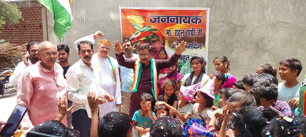 अम्बेडकर नगर। लोकसभा में नेता विपक्ष जननायक राहुल गांधी का जन्मदिन बहुत ही अद्भुत और अनोखे अंदाज में उप्र कांग्रेस सोशल मीडिया महासचिव संजय तिवारी की अगुवाई में मनाया गया। देश की उम्मीद राहुल गांधी के बैनरतले सैकड़ों बच्चों ने राहुल गांधी को राहुल चाचा का नाम दिया खूब जी भर कर निहारा केक काटा राहुल चाचा हैप्पी बर्थडे का गीत गाया और जमकर बचपन के रंग दिखाये और अपने राहुल चाचा से मिलने की इच्छा भी जताई। काली माई मंदिर प्रांगण फतेहपुर पकड़ी में प्रातः 10 बजे उप्र कांग्रेस सोशल मीडिया महासचिव संजय तिवारी और उप्र कांग्रेस सदस्य डा विजय शंकर तिवारी के साथ जिला उपाध्यक्ष सुखी लाल वर्मा, जिला उपाध्यक्ष और पीसीसी सदस्य गुलाम रसूल छोटू, जिला महासचिव शीतला प्रसाद श्रीवास्तव, रणवीर सिंह एडवोकेट,नगर अध्यक्ष रहे राजेश प्रजापति, मो असगर और विशाल पहुंचे तो वहां मौजूद सैकड़ों नौनिहालों और उनके परिवारों की आंखों में खुशियों की चमक थी बच्चों ने बर्थडे कैप पहनी एक हाथ में कापी पेंसिल संभाल दाहिने हाथ से केक काटा और अपने राहुल चाचा का जन्मदिन बड़े उत्साह और उमंग से मनाया। रिषी,सौरभ ,अभि सोनू ,साहिल संध्वा,गौरव ,लकी,रवि,जान्हवी  ,शौर्य ,अंजली,अंशिका शिवानी सहित सभी बच्चों ने जननायक राहुल गांधी जी के बारे में और जानने की चाहत में सवालों की झड़ी लगाई जवाब मिला संतुष्ट हो मां काली जी से प्रार्थना कर राहुल गांधी के दीर्घायु होने और प्रधानमंत्री बनने की कामना की। पीसीसी सदस्य डा विजय शंकर तिवारी, संजय तिवारी, गुलाम रसूल छोटू,सुखीलाल वर्मा ने बच्चों के साथ बैठकर उनके सपने पूंछे और खूब परिश्रम से पढ़कर आगे बढ़ने की सीख दी।