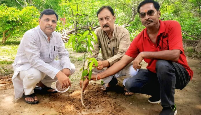 अयोध्या। वन महोत्सव सप्ताह के अवसर पर एक पेड़ माँ के नाम अभियान के तहत शनिवार को भाजपा के प्रदेश कार्यसमिति सदस्य शक्ति सिंह व महानगर अध्यक्ष कमलेश श्रीवास्तव ने राम मंदिर के पीछे लालकुर्ती मार्ग पर पौधरोपण कर पर्यावरण संरक्षण का संदेश दिया। अभियान के तहत विभिन्न प्रजातियों के पौधे रोपे गए।