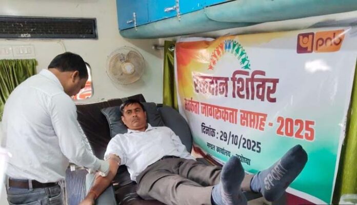 अयोध्या। सामाजिक उत्तरदायित्व के तहत पंजाब नेशनल बैंक ने सतर्कता जागरूकता सप्ताह के अवसर पर एक प्रेरणादायक पहल करते हुए रक्तदान शिविर का आयोजन किया। यह शिविर रीडगंज स्थित बैंक के मंडल कार्यालय पर आयोजित किया गया, जिसमें बैंक के अधिकारियों और कर्मचारियों ने उत्साहपूर्वक भाग लिया। कार्यक्रम का शुभारंभ मंडल प्रमुख अवधेश तिवारी ने फीता काटकर किया। इस अवसर पर उन्होंने कहा कि “सतर्कता जागरूकता सप्ताह न केवल नैतिकता और पारदर्शिता का प्रतीक है, बल्कि यह समाज के प्रति हमारी जिम्मेदारी को भी दर्शाता है। रक्तदान जीवनदान है, और इससे बड़ा कोई दान नहीं हो सकता।”