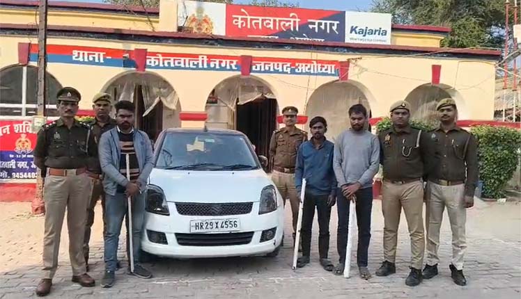 अयोध्या। कोतवाली नगर थाना पुलिस ने पत्रकार पर हुए जानलेवा हमले की घटना का सफलतापूर्वक खुलासा करते हुए इसमें शामिल तीन वांछित आरोपियों को गिरफ्तार कर लिया है। गिरफ्तार आरोपियों के कब्जे से घटना में प्रयुक्त कार, लोहे की पाइप और दो बांस के डंडे भी बरामद किए गए हैं। पुलिस टीम ने 4 दिसंबर की रात करीब 1:30 बजे अफीम कोठी के पीछे परिक्रमा मार्ग से तीनों आरोपियों को गिरफ्तार किया।