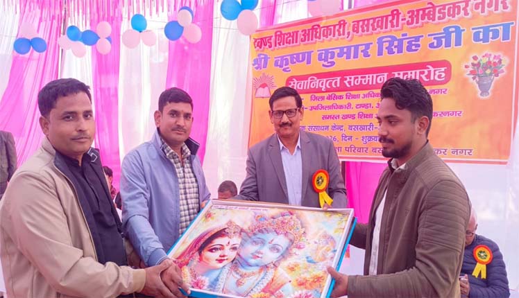बसखारी अम्बेडकर नगर। शुक्रवार को सेवानिवृत खंड शिक्षा अधिकारी बसखारी का बीआरसी के शिक्षकों एवं कर्मचारियो ने बीआर सी बसखारी के प्रांगण में विदाई सम्मान समारोह का आयोजन कर उन्हें भावभीनी विदाई दिया। विदाई समारोह में शिक्षकों ने उनके कार्यकाल के दौरान किए गए कार्यशैली को प्रेरणादायक बताया। खंड शिक्षा अधिकारी बसखारी कृष्ण कुमार सिंह लगभग तीन वर्ष से यहां पर तैनात थे। उन्होंने शिक्षा व्यवस्था को सुदृढ़ बनाने के लिए सहजता के साथ सरकार की मंशा को संपादित किया। उन्होंने शासन के द्वारा दिए गए शिक्षा को सुदृढ़ बनाने के हर निर्देश को चुनौती के रूप में स्वीकार कर अपने शिक्षक कर्मियों के साथ तय समय सीमा के पहले कार्यों को संपादित किया। विदाई सम्मान समारोह के दौरान सेवानिवृत्ति खंड शिक्षा अधिकारी कृष्ण कुमार सिंह ने कहा कि सेवानिवृत्त एक सरकारी प्रक्रिया है। जिसका सामना सभी कर्मचारियों को करना है। कर्मचारी अपने पद से महान नहीं होता बल्कि सहजता व सूझबूझ के साथ किया गया कार्य ही उसको महान बनाता है। जो लोगों के दिलों में हमेशा उनकी उपस्थिति दर्ज करवाता है। उन्होंने अधीनस्थ कर्मचारियों को विभागीय अधिकारियों के आदेश को दृढ़ संकल्पित होकर कार्य संपादित करने का आवाहन किया। सभी कर्मचारियों व शिक्षकों ने खंड शिक्षा अधिकारी को अंगवस्त्र, प्रतीक चिन्ह, गीता, रामायण देकर विदा किया। इस मौके पर खंड विकास अधिकारी राघवेंद्र प्रताप सिंह, सीडीपीओ डॉ नीरज पांडेय, खंड शिक्षा अधिकारी जहांगीरगंज संतोष पाण्डेय, अकबरपुर हिमांशु मिश्र, भियांव विवेक द्विवेदी, आनंद कुमार सिंह,सत्यमणि दूबे, आनन्द ओझा, अरुण कुमार, भोला पांडेय,सनोज कुमार, अमित कुमार सहित अन्य शिक्षक शिक्षिकाएं,व कर्मचारी मौजूद रहे।
