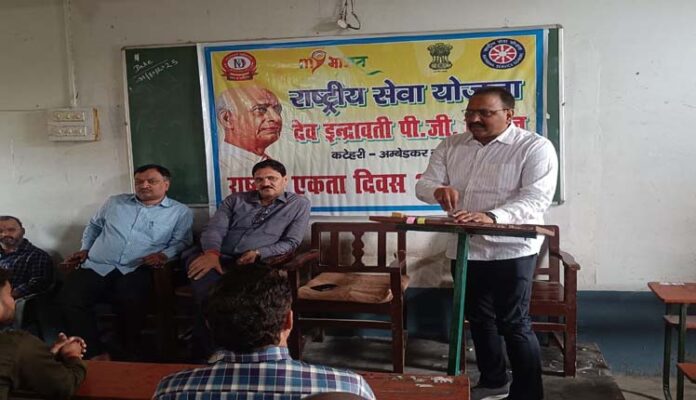अंबेडकर नगर। देव इंद्रावती महाविद्यालय में शुक्रवार को देश के लौह पुरुष सरदार वल्लभभाई पटेल की जयंती पर राष्ट्रीय एकता दिवस धूमधाम से मनाया गया। कार्यक्रम में मुख्य अतिथि के रूप में भारतीय जनता पार्टी के जिला उपाध्यक्ष एवं देव इंद्रावती ग्रुप ऑफ कॉलेजेज के प्रबंधक डॉ. राणा रणधीर सिंह उपस्थित रहे।