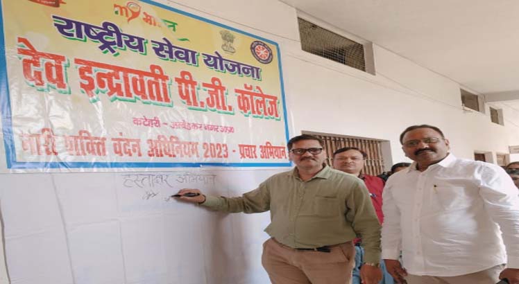देव इंद्रावती महाविद्यालय में नारी शक्ति वंदन अधिनियम को लेकर हस्ताक्षर अभियान