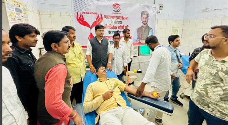 जिला अस्पताल में नारायण फाउंडेशन द्वारा आयोजित विशाल रक्तदान शिविर में लोगों ने बढ़-चढ़कर हिस्सा लिया, जिसमें 50 से अधिक यूनिट रक्त एकत्रित हुआ। इस अवसर पर फाउंडेशन के कार्यकर्ताओं ने अस्पताल में भर्ती मरीजों को फल वितरण कर उनके शीघ्र स्वास्थ्य लाभ की कामना की। कार्यक्रम में जिला अस्पताल के मुख्य चिकित्सा अधीक्षक डॉ. पी.एन. यादव विशेष रूप से उपस्थित रहे।