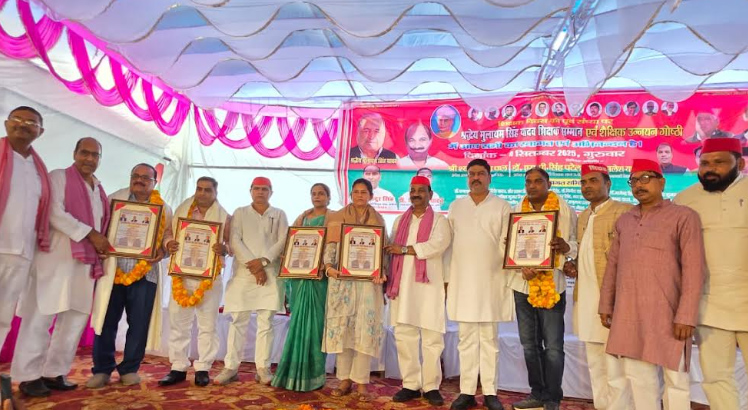 समाजवादी शिक्षक सभा द्वारा चुने गए पांच शिक्षक डॉ माधुरी मौर्या, कुबरा यासमीन, दयाशंकर भारतीय, संतोष कुमार यादव, एवं चंद्रकमल वर्मा को समाजवादी पार्टी के प्रदेश अध्यक्ष श्याम लाल पाल व कार्यक्रम के संस्थापक पूर्व मंत्री तेज नारायण पांडे ने प्रशस्ति पत्र व शाल ओढ़ाकर सम्मानित किया।