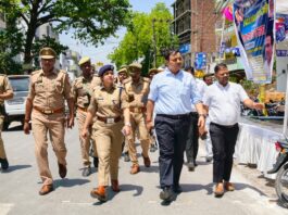 अंबेडकर जयंती पर डीएम-एसपी का फ्लैग मार्च, शांति-सुरक्षा का लिया जायजा