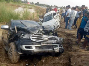मया बाजार /अयोध्या । रामलला के दर्शन कर आज़मगढ़ लौट रहे श्रद्धालुओं की मारुति कार को मंगलवार दोपहर एक तेज रफ्तार एंडेवर कार ने जोरदार टक्कर मार दी। हादसे में एक महिला की मौके पर ही मौत हो गई, जबकि चार अन्य गंभीर रूप से घायल हो गए। दुर्घटना मया बाजार टांडा बाईपास के समीप करीब 3:30 बजे हुई। टक्कर इतनी जबरदस्त थी कि दोनों गाड़ियां सड़क किनारे खेत में पलट गईं। प्रत्यक्षदर्शीयों के अनुसार टांडा रोड चौराहे पर अकबरपुर की ओर से आ रही तेज रफ्तार एंडेवर (UP32 KM 1400) ने कार को बाईं ओर से जोरदार टक्कर मार दी।
