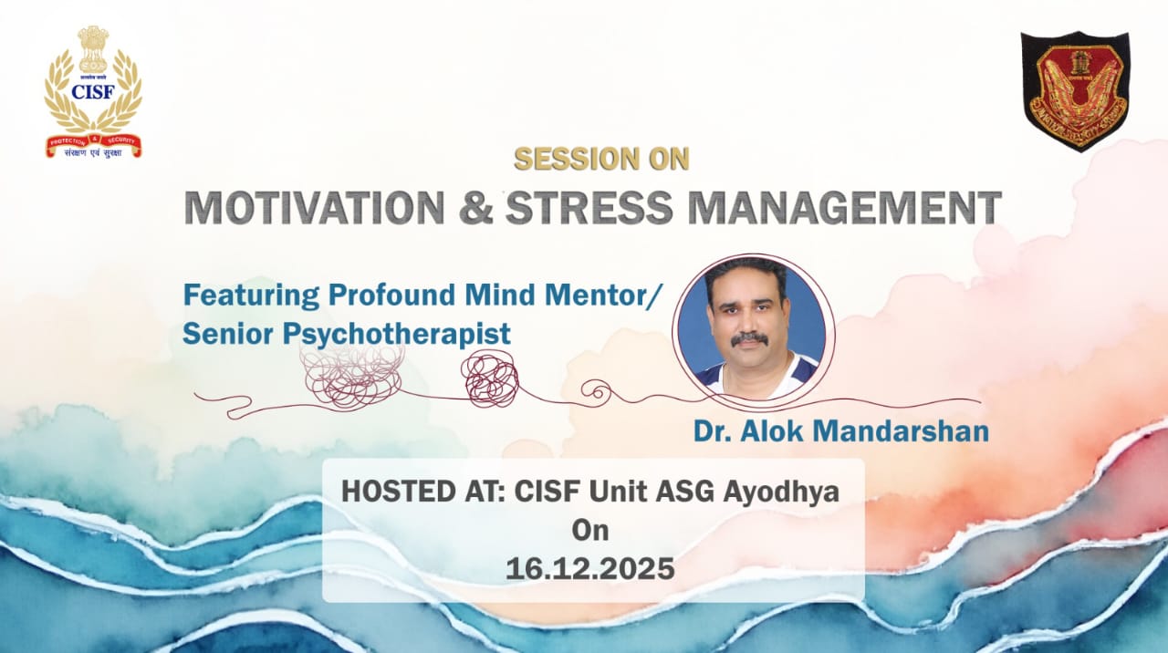 अयोध्या। महर्षि-बाल्मीकि एयरपोर्ट अयोध्या की सुरक्षा में तैनात केंद्रीय औद्योगिक सुरक्षा बल- सीआईएसएफ के डाभासेमर स्थित कैम्प परिसर में सुरक्षाबलों के मानसिक-स्वास्थ्य जागरूकता तथा विपरीत परिस्थितियों में भी सतर्क व अनुशासित ड्यूटी से उत्पन्न स्ट्रेस के मनोप्रबंधन व वर्क-ओवरलोड बर्न- आउट से निपटने की मेंटल कोपिंग-मैकेनिज्म या मनोरक्षा-युक्तियों के प्रशिक्षण व बिहैवियर- प्रोग्रामिंग की नितांत आवश्यकता के मद्देनजर यूनिट के असिस्टेंट कमांडेंट रोहित ढाका द्वारा प्रेषित अनुरोध के मद्देनजर जिला चिकित्सालय के माइंड मेंटर डा. आलोक मनदर्शन द्वारा विशेष मोटिवेशन एन्ड स्ट्रेस मैनेजमेंट कार्यशाला सत्र का आयोजन मंगलवार शाम को किया जायेगा। इस विशेष मेन्टल-हेल्थ अवेयरनेस वर्कशॉप में व्यक्तित्व विकार, एङ्जाइटी विकार,मूड विकार,निद्रा विकार,नशा विकार व अन्य मनोसामाजिक तनाव व मेन्टल ट्रामा से उपजे मनोसमस्याओं की पहचान व परामर्श जागरूकता का संचार किया जायेगा। डा मनदर्शन ने आशा व्यक्त की है कि यह मेन्टल रेजिलेंएन्स ट्रेनिंग सत्र अधिकारियों व जवानों मे मनोअंतर्दृस्टि का संचार करने व जीवन चर्या को खुशहाल बनाने में सक्षम साबित होगी ।