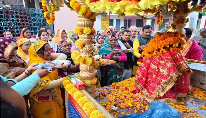 शांतिकुंज की ज्योति कलश यात्रा का शुकुल बाजार में भव्य स्वागत, सैकड़ों श्रद्धालुओं ने उतारी आरती