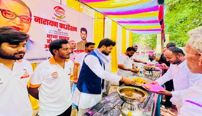 जलालपुर अंबेडकर नगर। भारत रत्न डॉ. भीमराव अंबेडकर की जयंती पर जिलेभर में विविध कार्यक्रमों का आयोजन किया गया। इस अवसर पर भाजपा नेता व नारायण फाउंडेशन के संरक्षक विवेक मौर्य के नेतृत्व में अकबरपुर कलेक्ट्रेट परिसर व बसखारी रोड पर विशाल भंडारा व जलपान कार्यक्रम आयोजित किया गया, जिसमें हजारों लोगों ने सहभागिता की।