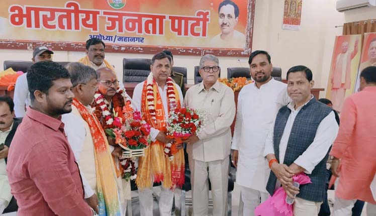 अयोध्या। भारतीय जनता पार्टी के नवनियुक्त जिलाध्यक्ष राधेश्याम त्यागी तथा महानगर अध्यक्ष कमलेश श्रीवास्तव का पार्टी कार्यालय सिविल लाइन, हनुमान गढी अयोध्या में पदाधिकारियों और कार्यकर्ताओं द्वारा भव्य स्वागत किया गया। इस अवसर पर कार्यकर्ताओं ने पुष्प गुच्छ, स्मृति चिन्ह और रामनामा भेंट कर दोनों नेताओं का अभिनंदन किया। दोनों नवनियुक्त पदाधिकारियों ने अयोध्या जाकर श्री रामलला व हनुमान गढी में दर्शन पूजन किया।