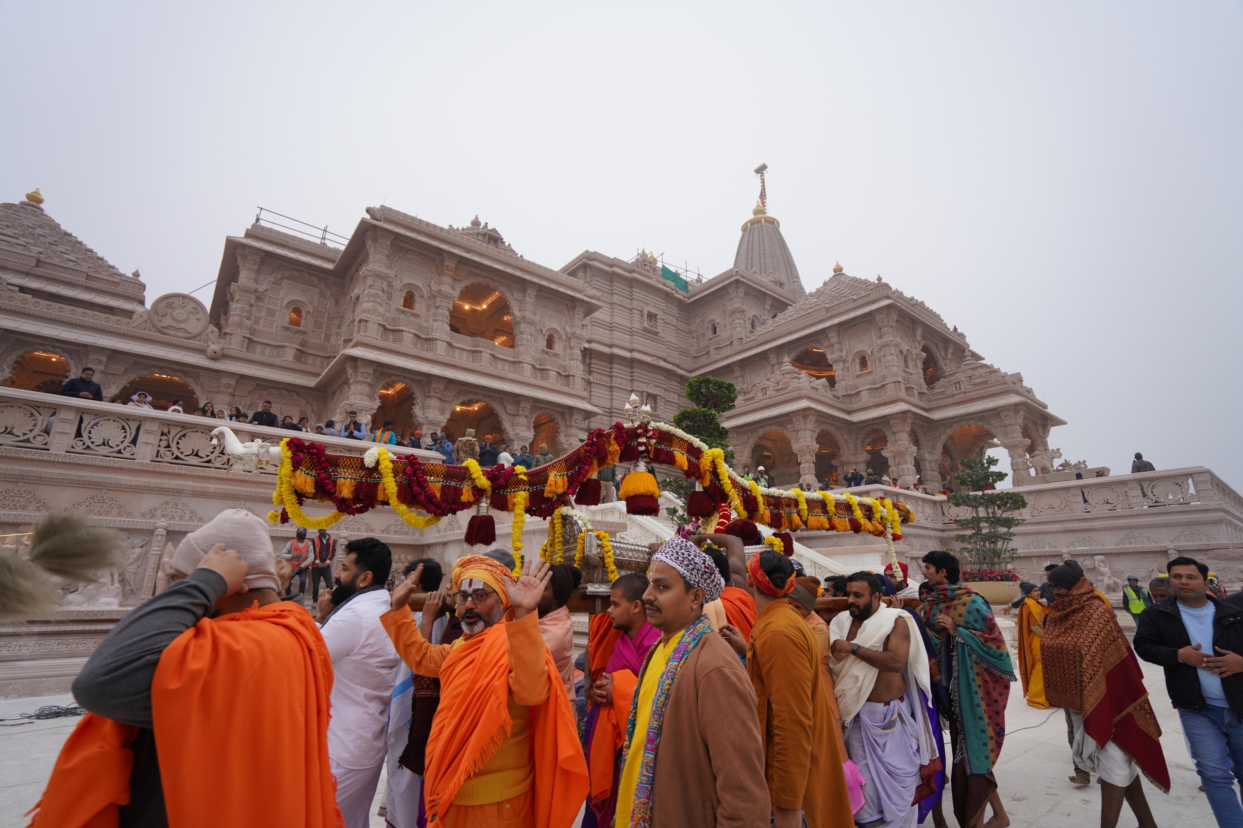 सायंकाल मंदिर परिसर में देवदर्शन के लिए उत्सव विग्रह की पालकी यात्रा निकाली गई। पालकी यात्रा के दौरान श्रद्धालुओं ने प्रभु श्रीराम के दर्शन किए। इस दौरान मंदिर परिसर और आसपास श्रद्धालुओं की उपस्थिति बनी रही।