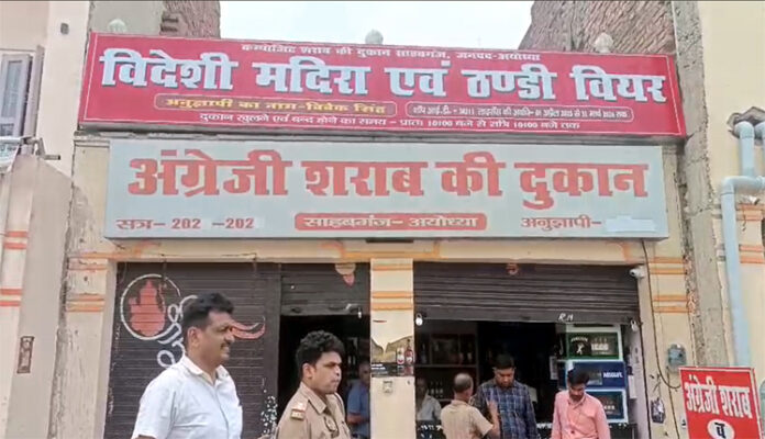 अयोध्या। साहबगंज स्थित शराब की दुकान में बीती रात चोरों ने हाथ साफ कर दिया। चोर ने दुकान से कई बोतल महंगी शराब तथा काउंटर में रखे रूपये लेकर चंपत हो गए। मौके पर पहुंची पुलिस व फारेंसिक टीम ने मौके का मुआयना किया। दुकान के मैनेजर विष्णु गुप्ता ने बताया कि 9 बजे रात में वह कैश लेकर चले गए थे। सुबह दुकान खोलने वाले कर्मचारी ने सूचना दी कि अंदर सामान बिखरा हुआ है। जिसकी सूचना पुलिस को दी गई। उन्होंने बताया कि रात 9 बजे की बिक्री के बाद का सारा रूपया चोर ले गए। साथ की कई शराब की महंगी बोतलें भी पार कर दिया। जिसका आकलंन स्टाक मिलाने के बाद पता चल पाएगा। चौकी इंचार्ज साहबगंज संतोष मौर्या ने बताया कि मौके पर पहुंच कर जांच की गई है तहरीर मिलने पर उसके अनुसार विधिक कार्रवाही की जाएगी।