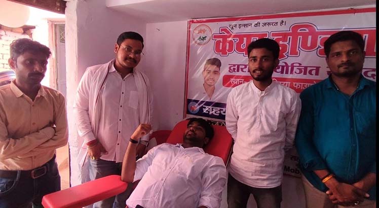 जलालपुर अंबेडकरनगर। एक यूनिट खून देने से दर्जनों बीमारों की जिंदगी बचाकर उन्हे नया जीवन दिया जा सकता है। रक्तदान से बड़ा कोई दान नहीं है। नगर में केयर इंडिया फाउंडेशन द्वारा आयोजित बृहद रक्तदान शिविर का आयोजन किया गया। इस शिविर मे ब्लड डोनेट करने के बाद उप जिलाधिकारी हरिशंकर लाल ने कही। उन्होंने कहा कि आज दुर्घटना में जहां बढ़ोतरी हुई है वही ऑपरेशन समेत अन्य गंभीर बीमारियों में खून की आवश्यकता रहती है। जो ब्लड रक्तदान शिविर से कलेक्ट होकर जाता है उससे प्रतिदिन दर्जनों दुर्घटना में घायल और गंभीर बीमारी से  जूझ रहे बीमारों की जिंदगी को एक नया जीवन मिलता है। ऐसे कार्यक्रम में युवाओं को आगे आकर बढचढ कर रक्तदान शिविर में अधिक संख्या मे ब्लड डोनेट करना चाहिए। सोमवार को केयर इंडिया फाउंडेशन अध्यक्ष इसहाक अंसारी ने अपने कार्यालय पर रक्तदान शिविर का आयोजन किया था। रक्तदान शिविर में राजकुमार सोनी, मोहम्मद हामिद, सुशील कुमार, होमगार्ड डीएन उपाध्याय, नावेद हैदर, सचिन, मोहम्मद तंजील समेत कुल 25 युवाओं ने रक्तदान किया। राजकीय महामाया मेडिकल कॉलेज टांडा की टीम ने डा0 सिद्धांत , काउंसलर दीपक नाग, नवीन,सत्यम,बाबू राम, शिवनारायण ने युवाओं का ब्लड संग्रह किया। इस दौरान केयर इंडिया फाउंडेशन के सप्रिय गोयल, समीर चौधरी, सुशील जायसवाल, अहमद हयात, कामरान आलम व्यवस्था में लगे रहे।