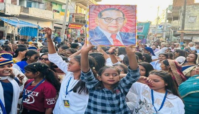 अंबेडकर जयंती के दूसरे दिन बसखारी बाजार में निकाली गई शोभायात्रा में शामिल हुए हजारो लोग