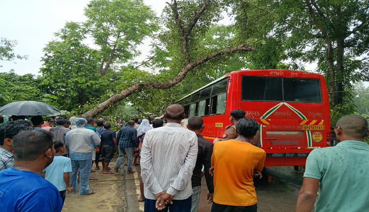 बाराबंकी। जिला मुख्यालय से हैदरगढ़ जा रही रोडवेज की अनुबंधित बस पर शुक्रवार सुबह लगभग 10 बजे अचानक गूलर का पेड़ गिर गया। हादसे में एडीओ, शिक्षिका व बस चालक सहित पांच लोगों की मौके पर ही मौत हो गई, जबकि 17 यात्री घायल हुए। सभी घायलों का प्राथमिक उपचार कराया गया। परिवहन निगम की ओर से मृतकों के आश्रितों को पांच-पांच लाख रुपये की आर्थिक सहायता दी जाएगी।