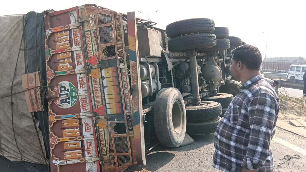 Home Ayodhya/Ambedkar Nagar अम्बेडकर नगर अनियंत्रित होकर पलटा अनार लदा ट्रक, चालक व खलासी घायल