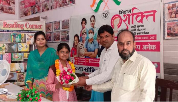 जलालपुर अंबेडकर नगर। शासन के निर्देश पर नगर के कन्या जूनियर हाईस्कूल में मिशन शक्ति अभियान के अंतर्गत महिला एवं बालिका सशक्तिकरण को बढ़ावा देने हेतु विशेष जागरूकता कार्यक्रम आयोजित किया गया। इस अवसर पर विद्यालय की प्रतिभाशाली छात्रा फातमा ज़हरा को एक दिन की प्रधानाध्यापिका बनाया गया।