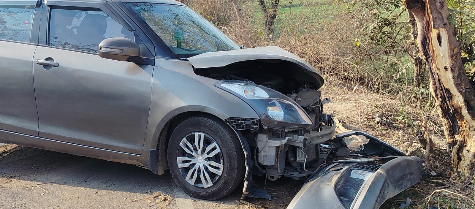 बाइक को बचाने में अनियंत्रित कार पेड़ से टकराई, बाल-बाल बचा चालक