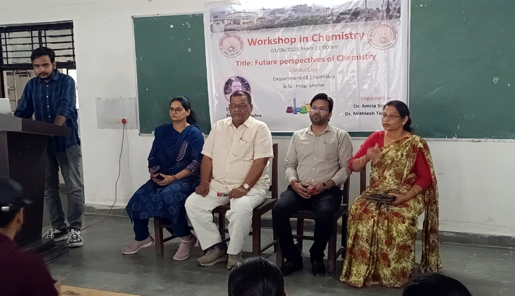 कार्यशाला में विद्यार्थियों हर्षिता पाण्डेय, दिशा यादव, अथर्व मिश्रा और अवनीश मिश्र ने पावर पॉइंट प्रेजेंटेशन के माध्यम से रसायन विज्ञान के विविध क्षेत्रों में उपयोग पर जानकारी साझा की। कार्यक्रम का संचालन डॉ. अमिता सिंह एवं डॉ. मिथिलेश तिवारी ने किया, जबकि धन्यवाद ज्ञापन डॉ. संदीप रावत ने किया। कार्यशाला में बीएससी के सभी शिक्षकगण, कर्मचारी एवं छात्र-छात्राएं बड़ी संख्या में उपस्थित रहे।