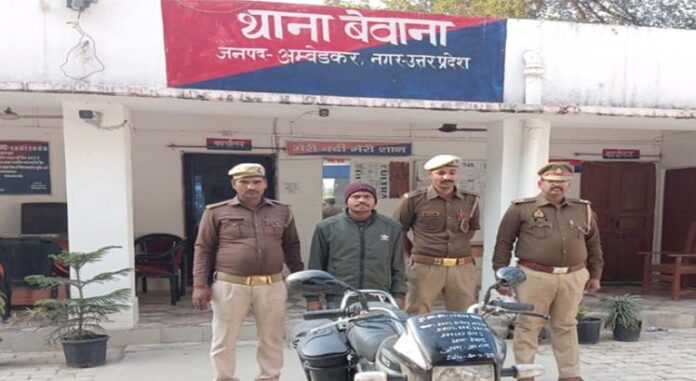 अम्बेडकरनगर। टांडा कोतवाली पुलिस ने चोरी की मोटरसाइकिल के साथ एक युवक को गिरफ्तार कर बड़ी सफलता हासिल की है। पुलिस अधीक्षक के निर्देश पर चलाए जा रहे अभियान के तहत शनिवार तड़के बहोरापुर गांव के पास से आरोपी को दबोचा गया।